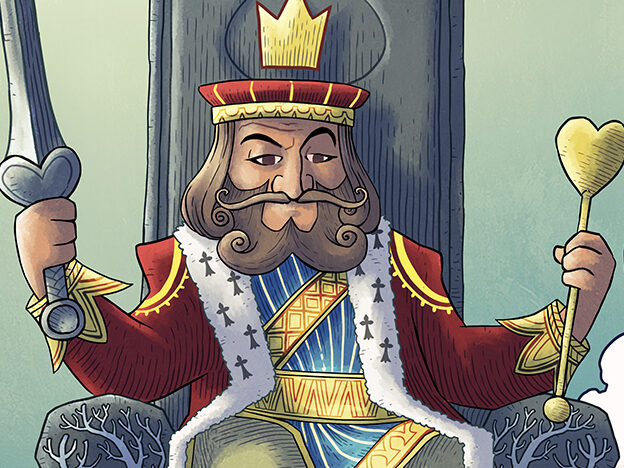 À ses côtés, le Roi de Cœur, que Carroll décrit souvent falot, devient dans le tarot le Roi d’Épées : figure du jugement, de l’ordre écrit… mais qui, sous la plume de Carroll, semble toujours en retrait derrière la furie de son épouse. Une leçon de tarot en creux : le pouvoir n’est rien sans celui ou celle qui l’incarne pleinement.